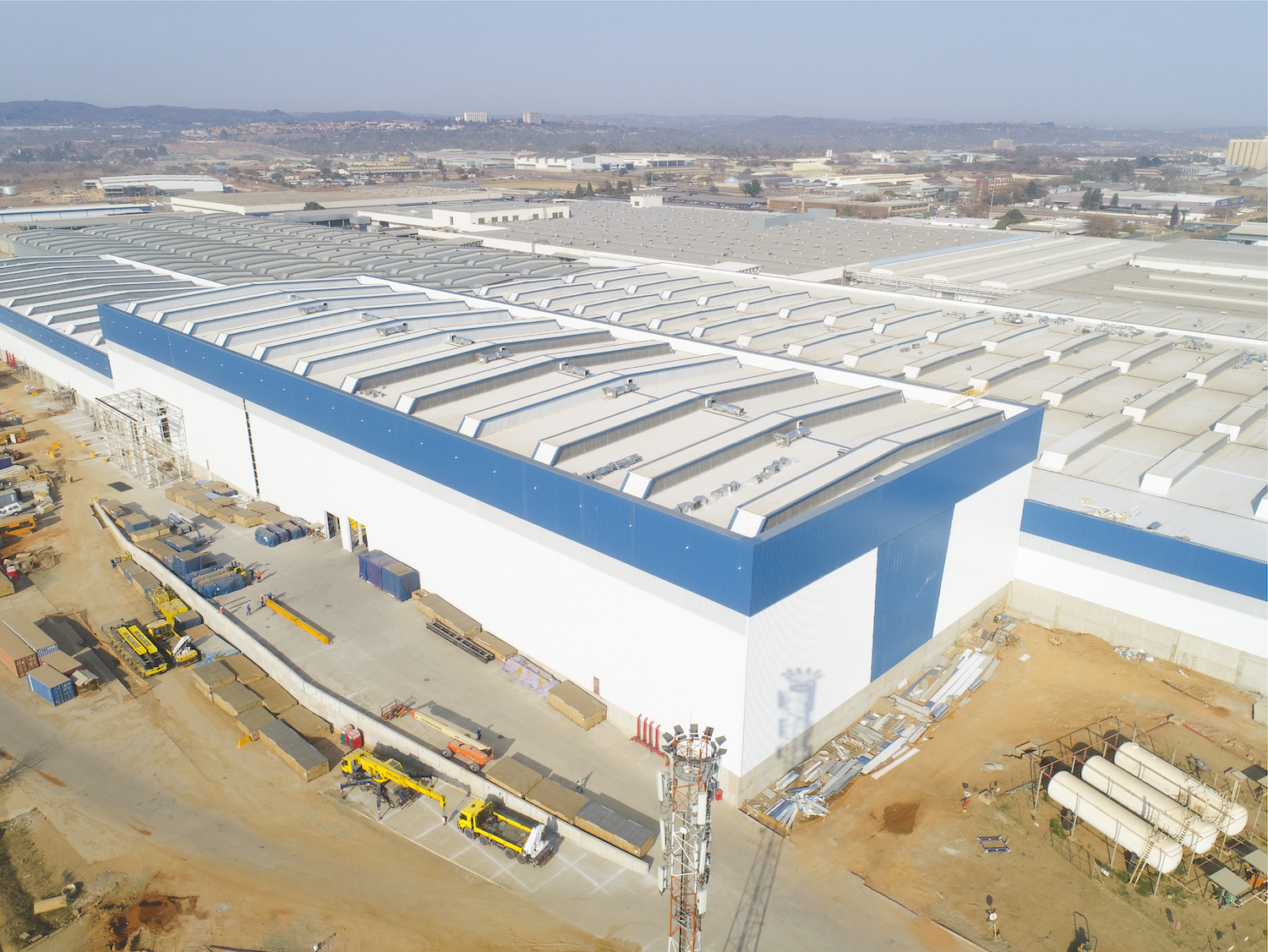 The stamping plant will use a high-speed line to produce all the major sheet metal components for the new Ranger bakkie and Volkswagen Amarok, starting in 2022. The line will contain 5 press machines (2500t, 1600t and 3 No. 1000t). Dies will be manoeuvred using 3 overhead cranes (2 No. 60 tonne capacity Slinger Cranes and 1 No. 63 tonne Gripper Crane) and one semi-gantry crane (50 tonne Slinger Crane), with possibility of adding a fourth 60 tonne overhead crane in the future. Will also house offices, CNC Mill, Blue Light Scanner Room and ATC training facility.