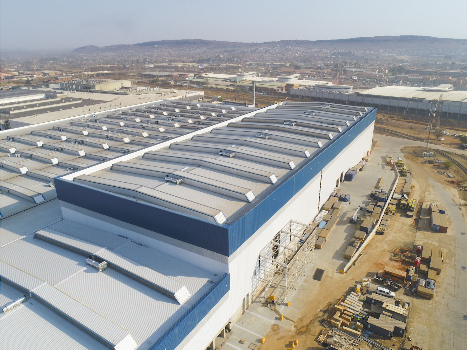 The stamping plant will use a high-speed line to produce all the major sheet metal components for the new Ranger bakkie and Volkswagen Amarok, starting in 2022. The line will contain 5 press machines (2500t, 1600t and 3 No. 1000t). Dies will be manoeuvred using 3 overhead cranes (2 No. 60 tonne capacity Slinger Cranes and 1 No. 63 tonne Gripper Crane) and one semi-gantry crane (50 tonne Slinger Crane), with possibility of adding a fourth 60 tonne overhead crane in the future. Will also house offices, CNC Mill, Blue Light Scanner Room and ATC training facility.